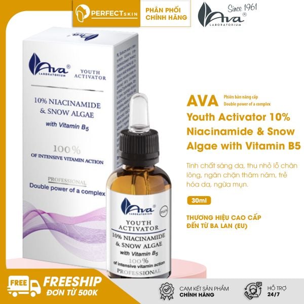 Tinh chất sáng da, thu nhỏ lỗ chân lông AVA Youth Activator 10% Niacinamide & Snow Algae with Vitamin B5
