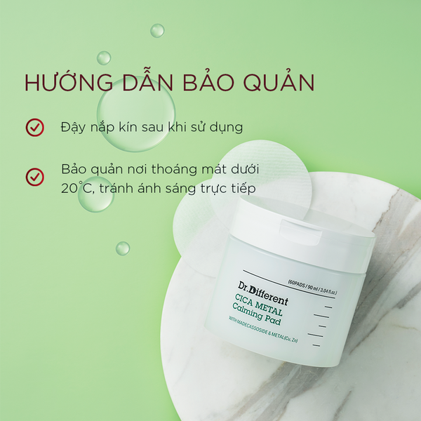Hướng dẫn bảo quản Toner pad làm dịu và phục hồi da Dr.Different CICA Metal Calming Pad