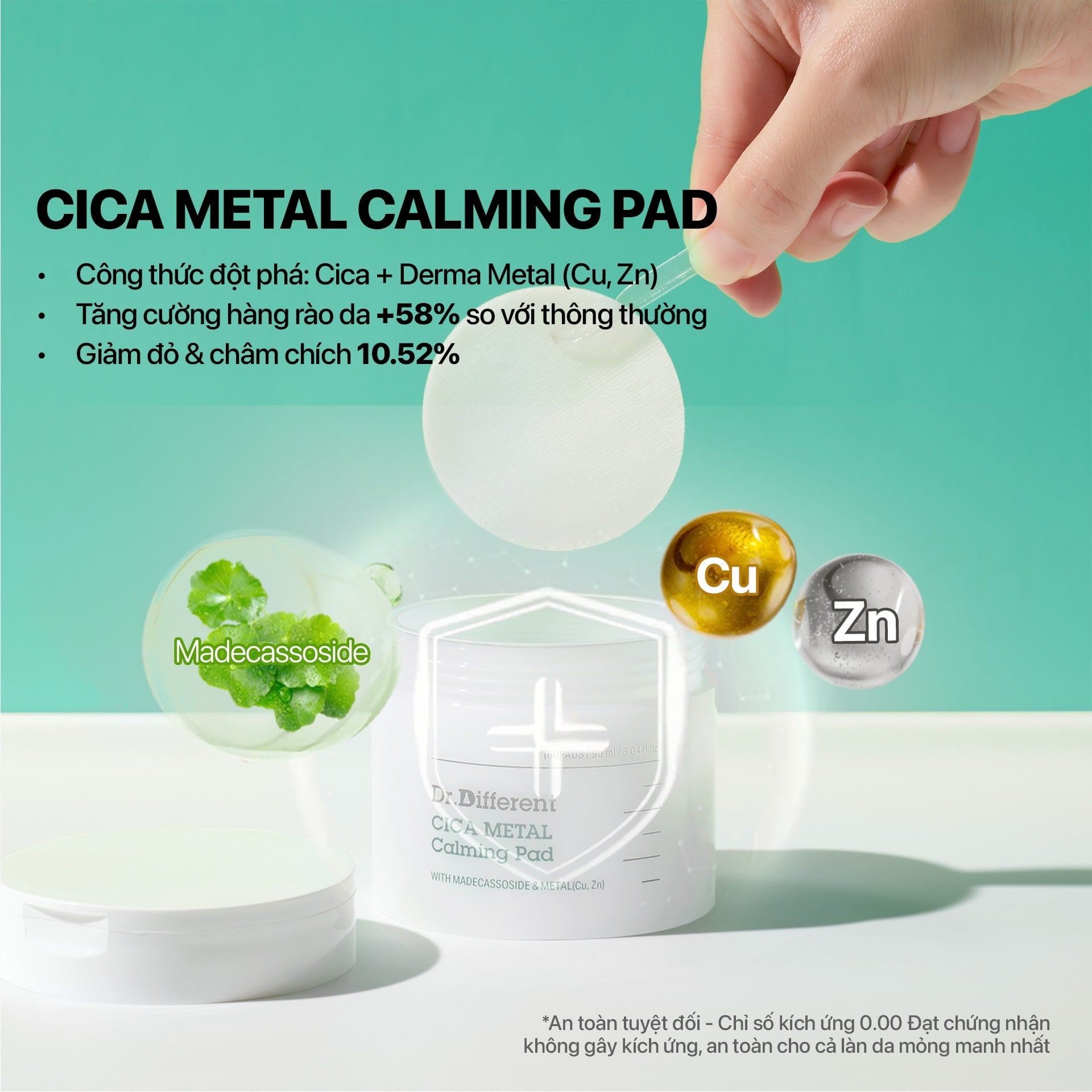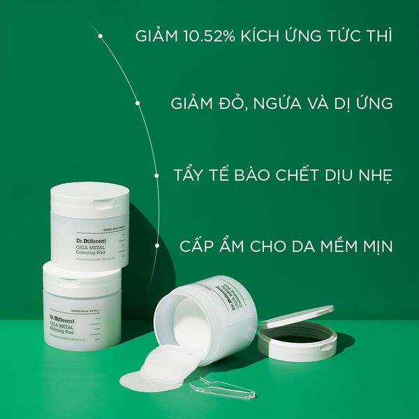 Ưu điểm nổi bật của Toner pad làm dịu và phục hồi da Dr.Different CICA Metal Calming Pad
