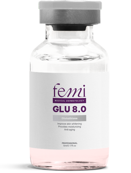 Tinh chất Meso FEMI GLU 8.0 trắng da, mờ thâm sạm nám, căng bóng mịn màng là sản phẩm điều trị tối ưu chống lão hóa và làm trắng sáng da toàn diện, với công thức chứa Ascorbic acid, Tranexamic acid, Glutathione, Acid amin và Multi-peptide. Thành phần chính là Glutathione 8% là một chất chống oxy hóa mạnh mẽ, có khả năng thâm nhập vào các lớp biểu bì sâu hơn giúp loại bỏ, ngăn ngừa tổn thương từ gốc tự do, tăng cường tổng hợp Collagen. Giảm thiểu Melanin để ngăn chặn sự hình thành sắc tố da. Dưỡng sáng da từ bên trong. Thúc đẩy sản sinh collagen mới nhờ acid amin và multi-peptide. Duy trì làn da sáng hồng, mịn màng.